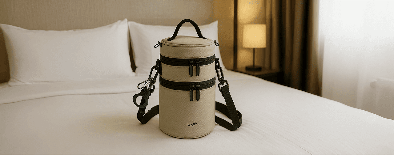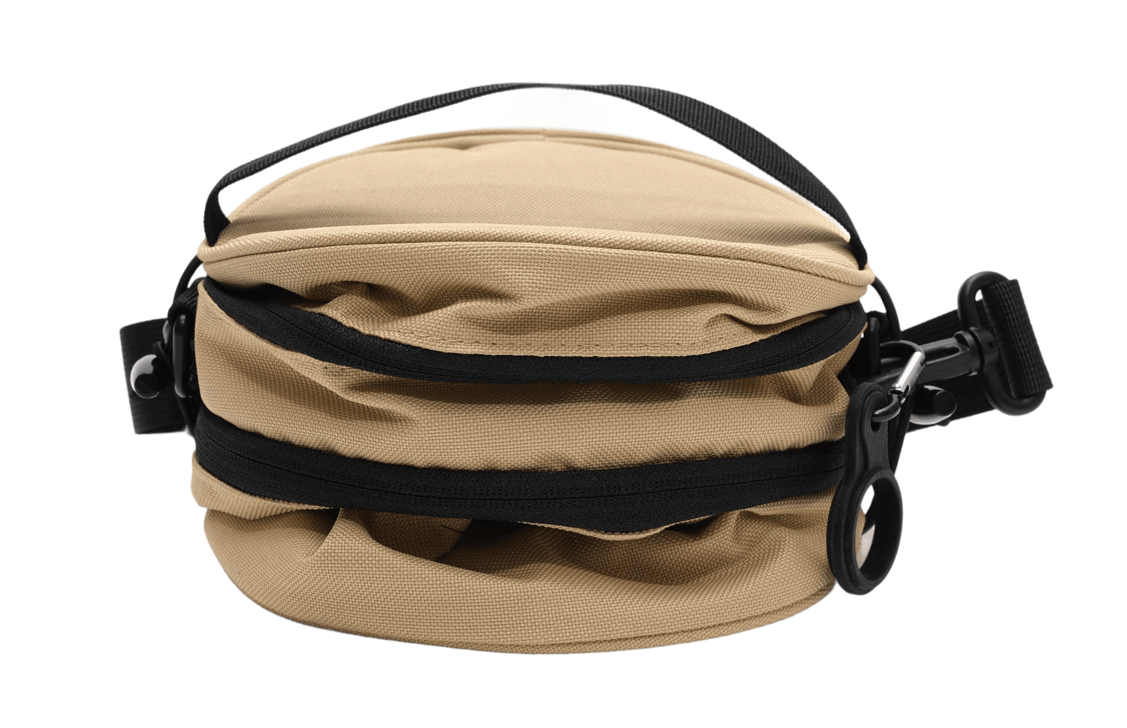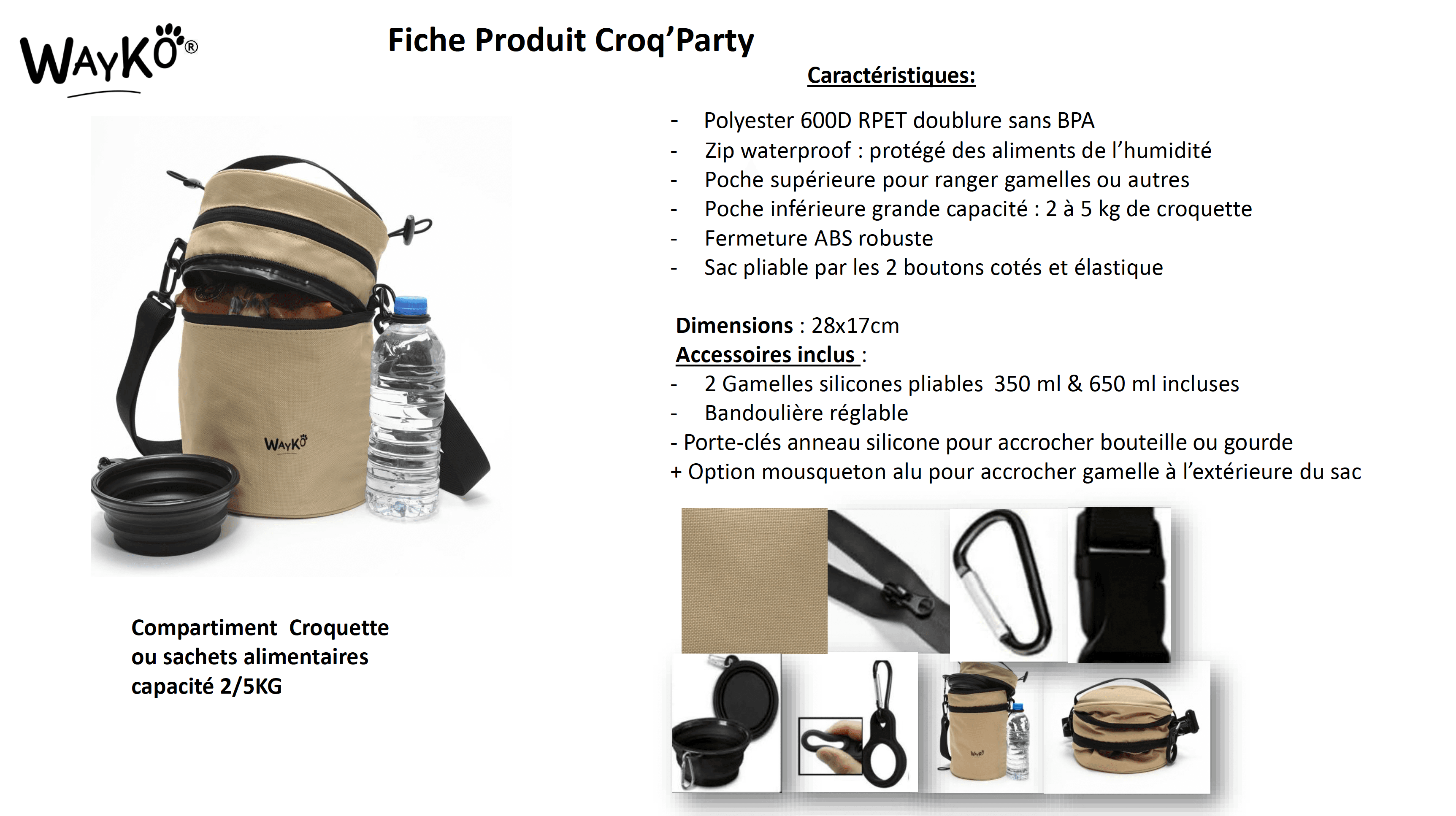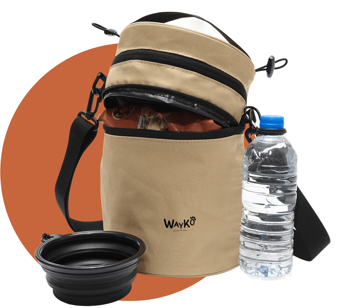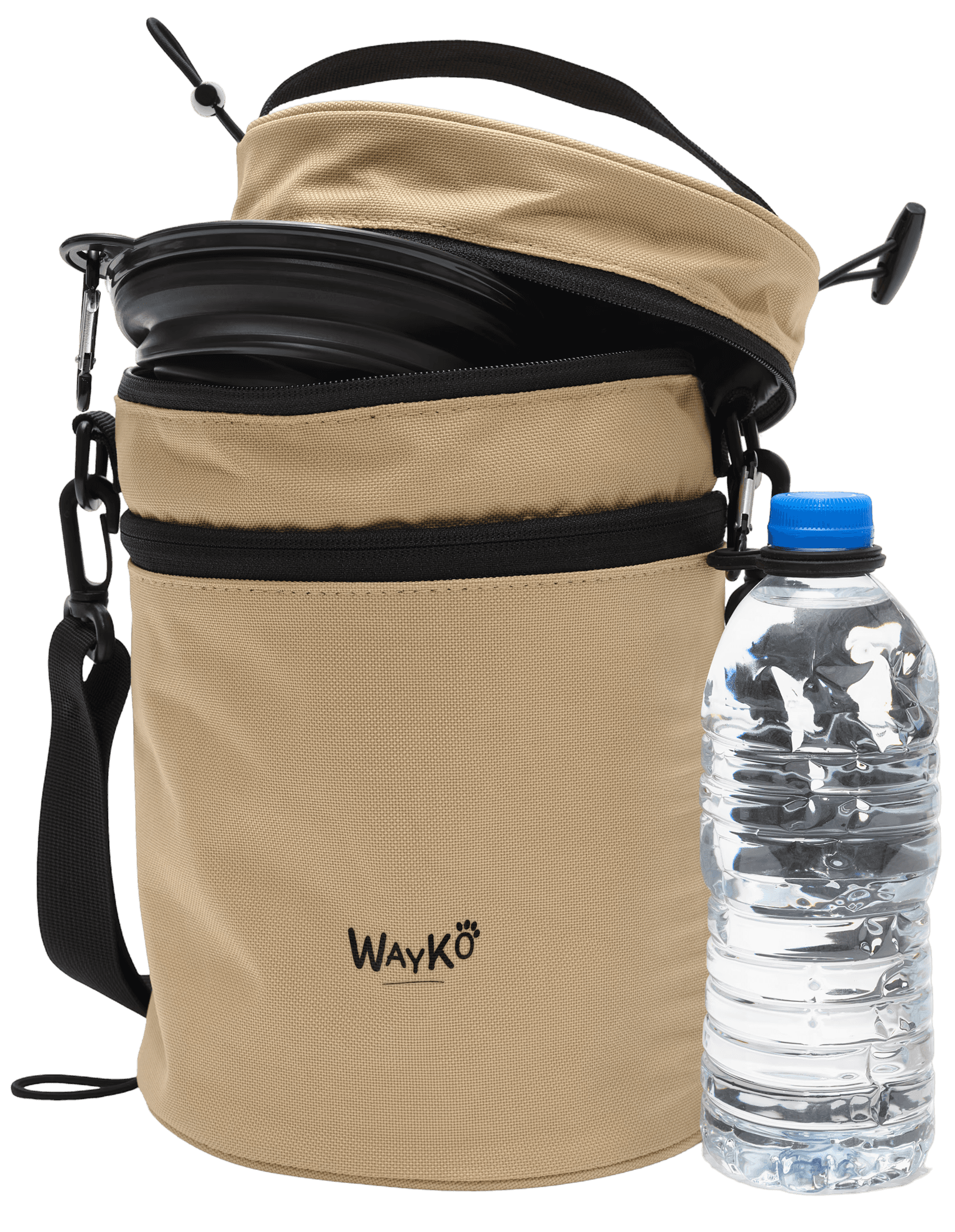 - An upper part with two collapsible silicone bowls, discreet, lightweight, and easy to clean